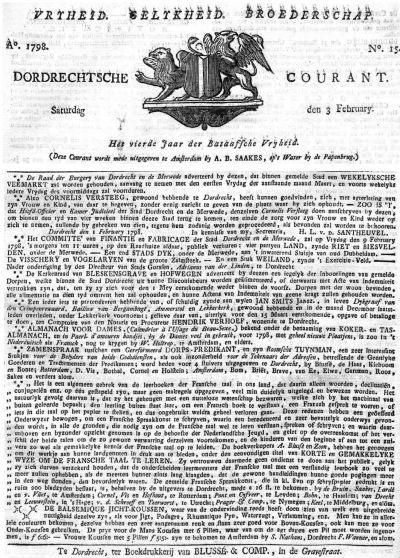 Hier een stuk uit de krant van 1798 waar zoiets instaat, had ik gekopieerd om de advertentie van de kerkeraad alhier aan de inboorlingen van Bleskensgraaf te Dordrecht .
